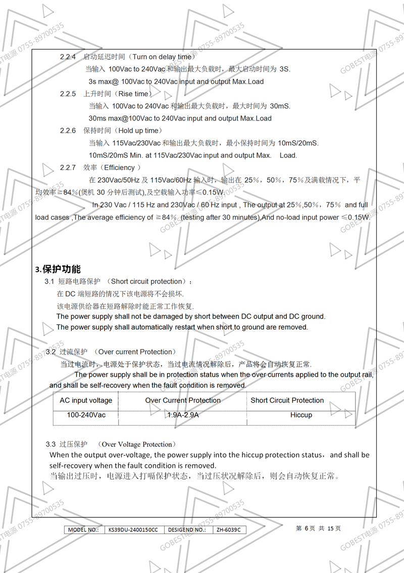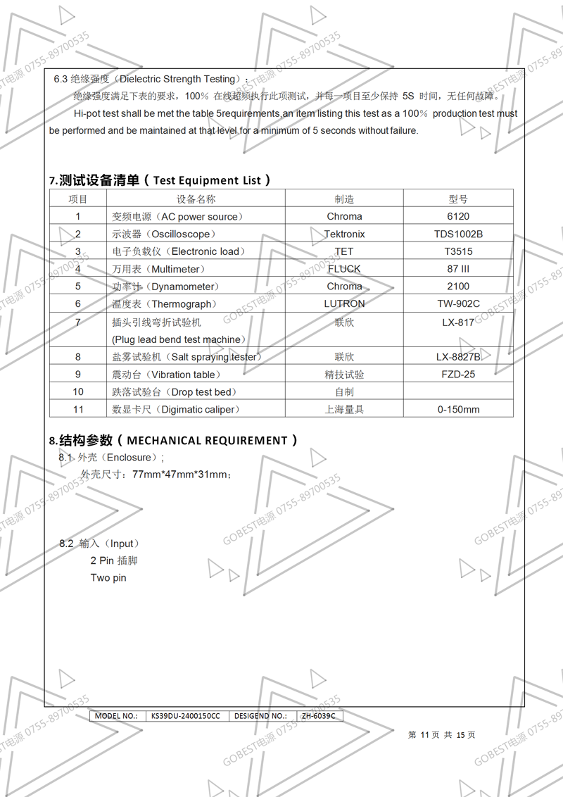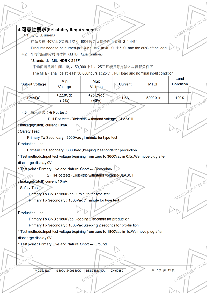 24V1.5A電源適配器規(guī)格書(國標(biāo)插墻式)
