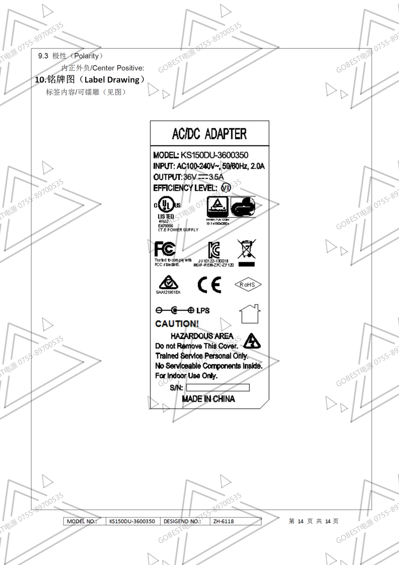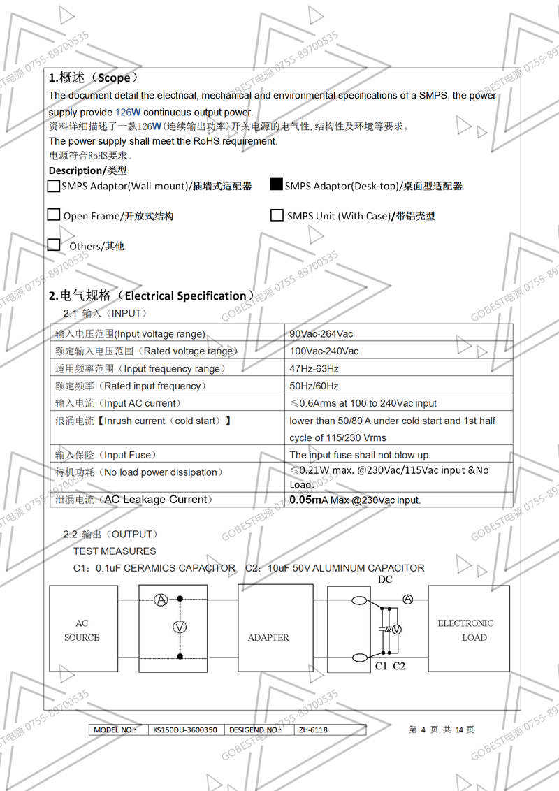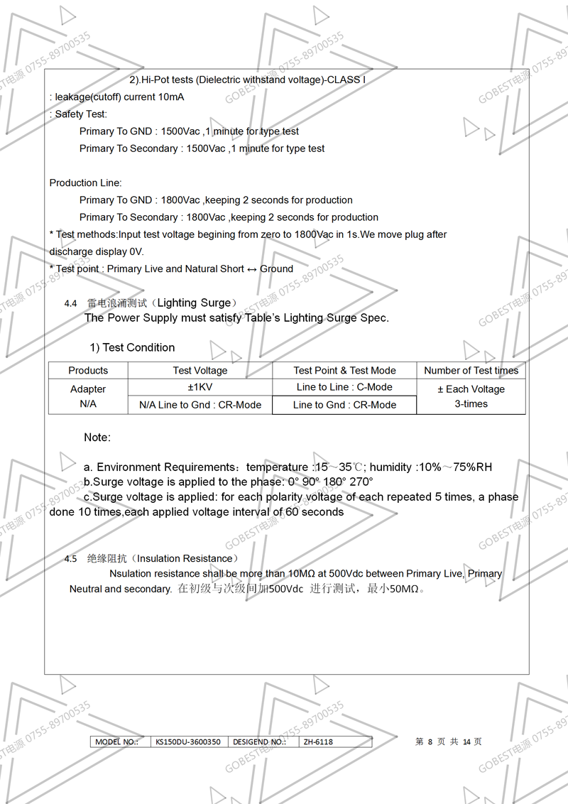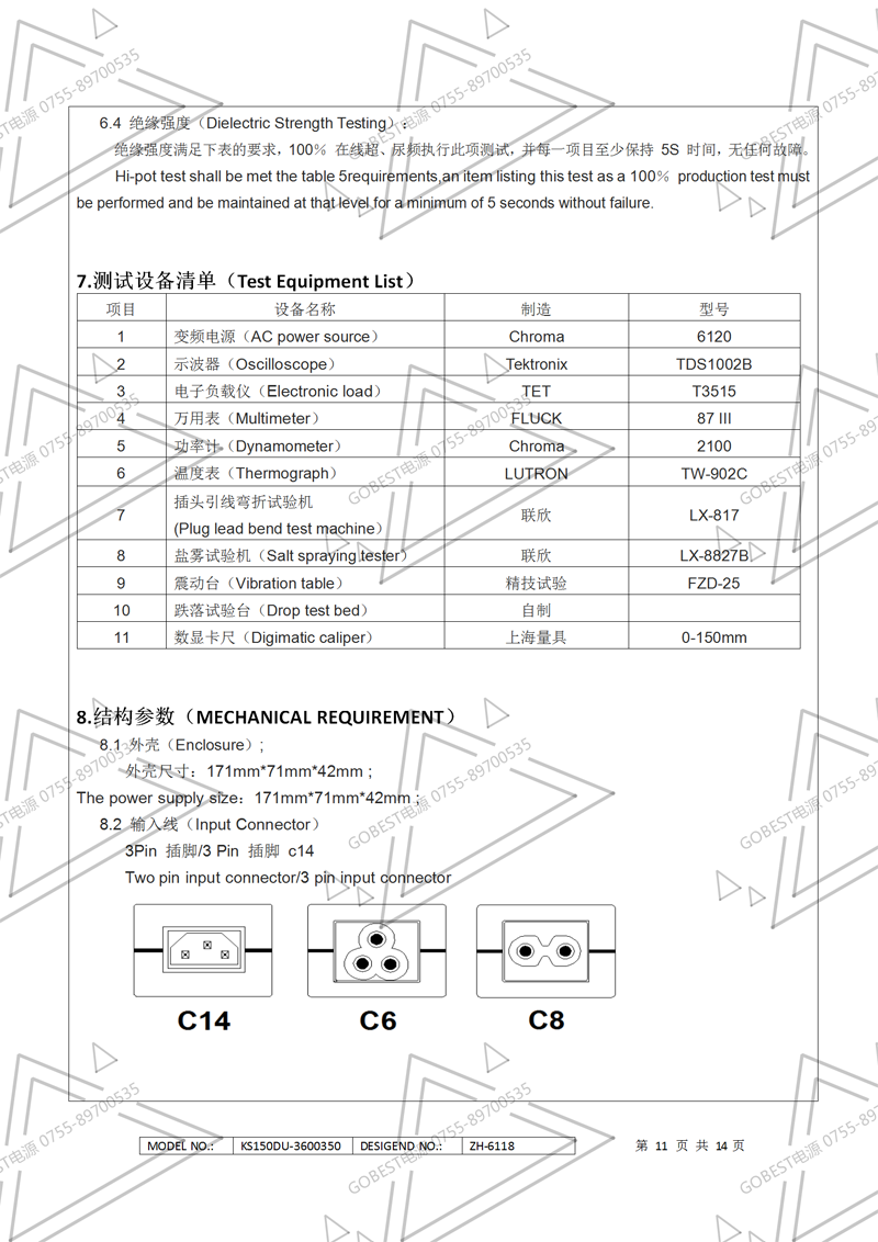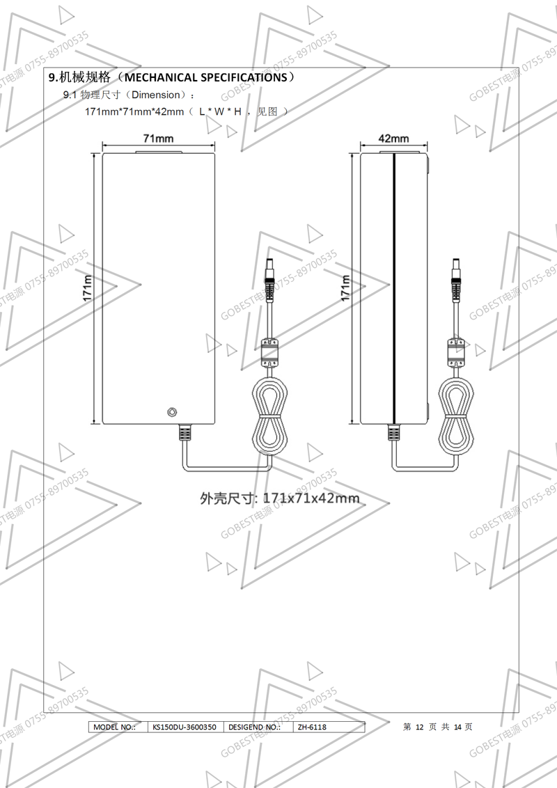 19V3.5A電源適配器規格書