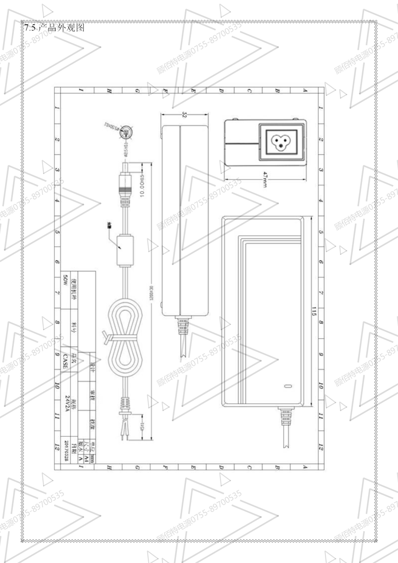 24V5A電源適配器規(guī)格書(新模具)