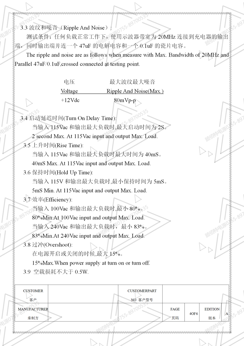 電源規(guī)格書