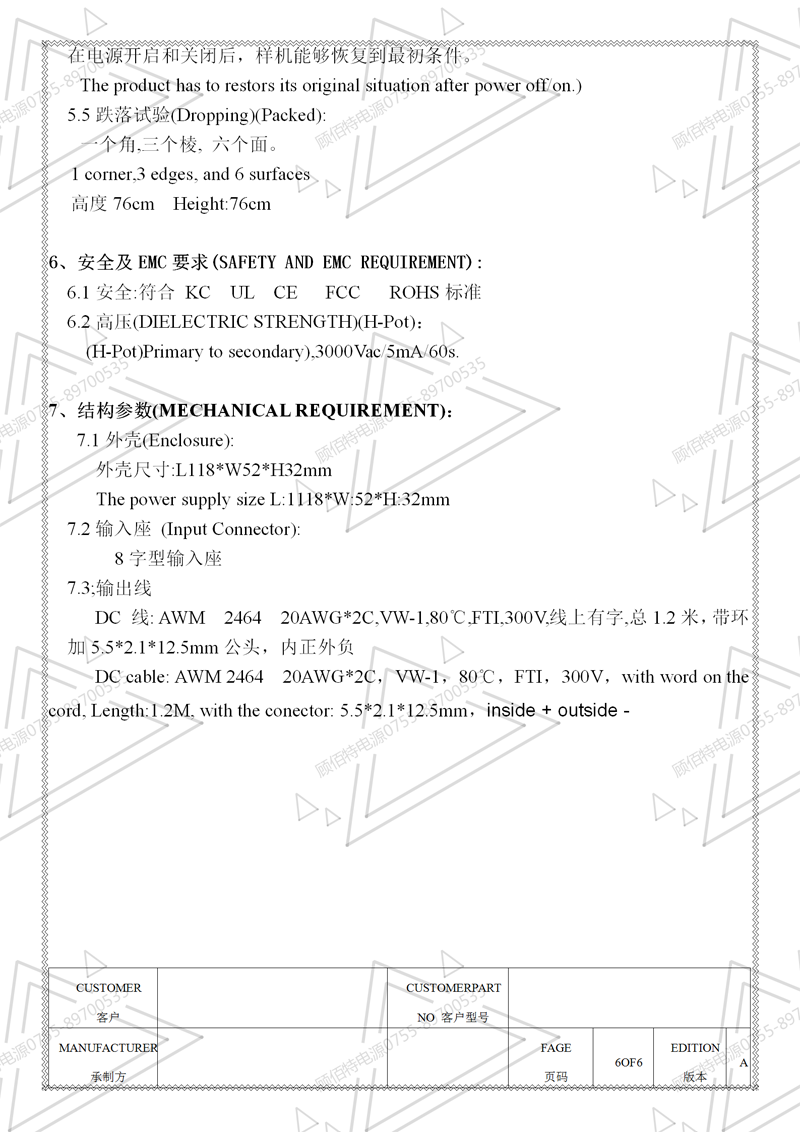 24V6A電源適配器帶PFC電路規(guī)格書(新模具)